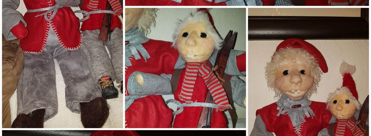 Min aller nyeste hobby. Dette er noe jeg startet med rett før jul og jeg synes det er så gøy. Søsteren min har hatt en finger med i spillet her også. Begynte med at jeg skulle lage julegenser for å sende inn til NRK symesterskapets konkurranse på instagram. Da ville jeg ha noen mus som løp rundt en gammel støve (Musevisa). Så ble det en nisse, og så en til.. En flott avveksling til syingen.